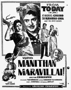 Manithan Maravillai (transl. Man has not changed) is a 1962 Indian Tamil-language comedy drama film written, co-produced and directed by Chakrapani and produced by Nagi Reddi under Vijaya Productions. It is a remake of the Telugu film Gundamma Katha, which itself is based on the 1958 Kannada film Mane Thumbida Hennu.