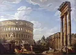 Pembroke, then Lord Herbert, based the design of Marble Hill to a large degree on Andrea Palladio's 1553 Villa Cornaro in Piombino Dese, Italy, and thus incorporated a cubic saloon on the first floor or piano nobile.[4] Villa Cornaro also served as a model for plantation houses in the American colonies, examples being Drayton Hall (1738–1742) in Charleston, South Carolina, and Thomas Jefferson's initial version of Monticello (1768–1770). It was in other respects an adaptation of a more expansive design by Colen Campbell. It is set in 66 acres (2.67 km2) of parkland known as Marble Hill Park. The Great Room contains lavishly gilded decoration and five capricci paintings by Giovanni Paolo Pannini. Marble Hill House also contains a loaned collection of early Georgian furniture and paintings as well as the Chinoiserie collection of the Lazenby Bequest.[5]