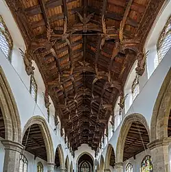 The church is known for its magnificent double-hammer beam roof with 120 carved angels; it is regarded as one of the best of its kind. John Betjeman described the church as "worth cycling 40 miles in a head wind to see".[17] The church describes itself as an evangelical church "with an emphasis on biblical teaching".[18]