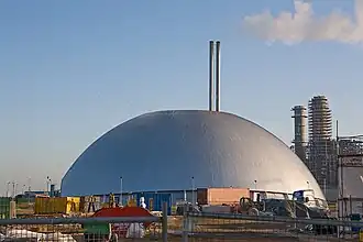 The new plant, commissioned in 2007, was built close to the site of the old incinerator.[2] The plant is surrounded by a metal dome superstructure which was designed by the architect Jean-Robert Mazaud.[4] The dome was built by the Texas company Geometrica.[5] It was built using galvanized steel tubing joined with high-strength aluminium hubs,[5] which was then clad in aluminium.[6]
