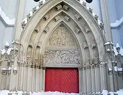 Most notable about the Mariazell Basilica, built in the 14th and 15th centuries but with a superb baroque interior, are the three towers on its western front. The church houses the Magna Mater Austriae ("Great Mother of Austria") in its so-called Gnadenkapelle (“Grace Chapel”). The holy image is a small wooden Marian statue from the 13th century, which is clothed in a splendid garment and plays a great role in the popular devotions of many Austrian Catholics.