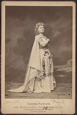 Marie Haupt (18 April 1849 – 1928) was a German operatic soprano who had an active career during the latter half of the 19th century. She is best remembered today for portraying several roles in the first complete presentation of Richard Wagner's The Ring Cycle at the very first Bayreuth Festival in 1876.[1]