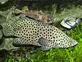 | Blue dot grouper | ![]() | Cephalopholis argus | No | Deep black to tan fish with blue spots throughout. | 50 cm (19.7 in) |