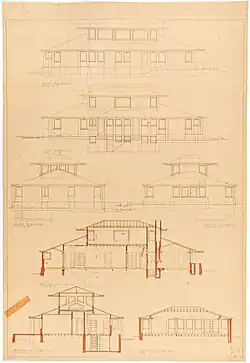 Watercolor from the Canberra DesignArtist's Studio (Section). Watercolor and ink by Marion Griffin 1894Design for Suburban Residence Exhibit plan 2Design for Suburban Residence Exhibit Plan 1