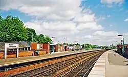 Market Harborough railway station serves the town of Market Harborough, in Leicestershire, England. It is situated to the east of the town centre and lies on the Midland Main Line, 16 miles (26 km) south-east of Leicester. The building is Grade II listed.[1]