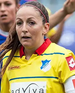 Martina Moser (born 9 April 1986) is a Swiss former footballer who played as a midfielder.[2] She is a member of the Swiss national team.[3] In both 2018 and 2019, she helped her team win the Nationalliga A Women and Schweizer Pokal Frauen trophies. In 2021, they were runners-up for both.[4]