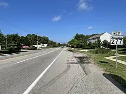 Maryland Route 277 (MD 277) is a state highway in the U.S. state of Maryland. The highway runs 2.51 miles (4.04 km) from Elk Mills east to MD 279 near Elkton in northeastern Cecil County. MD 277 was constructed west of MD 316 in the early 1920s. The highway was planned to be extended in both directions in the late 1940s. However, neither extension occurred until MD 277 was extended east to MD 279 in the mid-1980s.