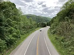 MD 36 then continues toward Midland. At Midland, there is a sharp curve in the road.[1] Along this curve, MD 36 intersects Church Street, which connects to MD 936, the old alignment of MD 36 between Midland and Frostburg. The new alignment of MD 36 proceeds northeast, passing near Vale Summit, where it intersects MD 55.[1]