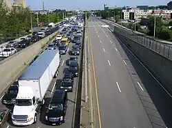 The Sweetser Circle has been the site of numerous major accidents, including a gas tanker rollover early on December 5, 2007 that resulted in 9,400 U.S. gallons (36 kL) spilling, igniting and destroying 21 vehicles and two large multi-family homes.[2]