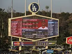 Despite his stellar regular season, Carpenter batted only .203 in the postseason. Against the Pittsburgh Pirates in the NLDS, he started slowly, managing just one hit in 19 at-bats (.053). He improved his batting average to .261 against the Los Angeles Dodgers in the NLCS. In the fourth inning of Game 6, Carpenter faced Dodgers ace Clayton Kershaw and lined a double to right field to end an 11-pitch at bat and ignite a four-run outburst. They eventually won, 9–0, securing a trip to the World Series.[25] Carpenter batted .296 in the World Series against the Boston Red Sox. However, in the ninth inning in Game 6 against Boston closer Koji Uehara, he struck out for the final out, resulting in the Cardinals' eighth and most recent World Series loss.[26]