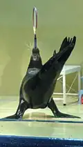 Since partnering with Epson and Maxell, aquariums have incorporated projection mapping into entrance hall and dolphin shows.[19] The Stadium has 1,350 seats, and there are shows by Pacific white-sided dolphins, bottlenose dolphins, and false killer whales that make full use of technology such as water curtains. [20][21] Also, the dolphin show at The Stadium is different day and night.[22]