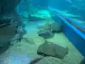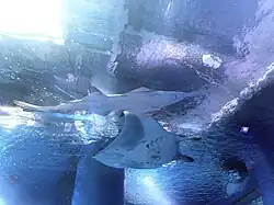 A dome-shaped tunnel fishtank with a total length of 20 m (66 ft) named "Wonder Tube" is installed in the facility. In Wonder Tube, about 15 species of rays of various sizes, including manta rays, are kept.[23] This aquarium has the only facilities in the world where dwarf sawfish are kept. There are events such as an experience corner where you can feed krill to manta rays.[20][24]