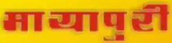 In 1974, the Mayapuri Group launched the first weekly Hindi film magazine Mayapuri of India, which proved to be a big success.[4] It has been one of the most popular Hindi magazines, covering Bollywood, since its inception and is most sought after film-gossip magazine in northern Hindi belt of India. "Mayapuri" also finds mention in the 2008 Bollywood film Ghajini and the popular Star One teen drama series Miley Jab Hum Tum. One could find this Mayapuri (Hindi) magazine at any barber shop in India, a glossy magazine full of filmy gossips.[6][7] Some of the old issues of decades of 1970–80s are considered as vintage.[8]