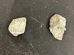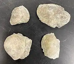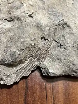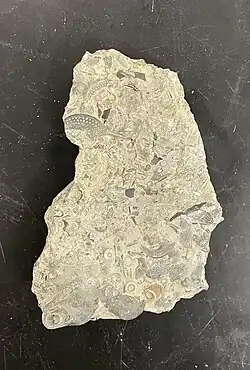 Much of North America was underwater during the Ordovician period, therefore the Bellevue formation was formed from shallow water deposits consisting mostly of shale.[2] Within the layers of shale, brachiopod fragments are prevalent, and commonly vinlandostrophia are found. There are many small crinoid stems because of the deposits that came from the shallow water in the most recent years of the Ordovician. The base of the formation contains a large collection of echinoderms.[3] Crinoids are a part of the echinoderm phylum. There are larger fragments of bryozoa as well as vinlandostrophia in comparison to the Fairview and Kope formations,[2] which can be found in the lower and base portions of the formation.