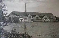 This paper mill was marked on Hasted's map and known to be in operation in 1716. It may be the paper mill at Wrotham which William Quelch was working in the period 1723–31.[8] The mill pond was 175 yards (160.02 m) long and 75 feet (22.86 m) wide at the mill, giving an area of 4,375 square yards (3,658 m2). George How Green was the occupier of the mill in 1835 when he leased Hamptons Paper Mill. The mill burnt down in 1917 and was rebuilt and worked by steam power until 1960. It finally closed after damage suffered in the floods of September 1968. The mill supplied paper used for postage stamps. Although often referred to as being in Borough Green, the mill site actually stands within the parish of Platt.A, C[9][10][11]