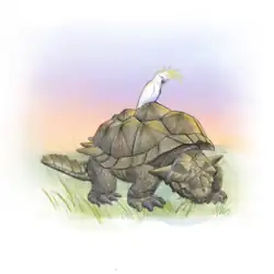 Rafting is another hypothesis that has been suggested and would propose that meiolaniids dispersed when animals stuck on natural rafts were washed to distant islands. Multiple reports exist of giant tortoises coming ashore far away from their place of origin after severe storms, with one particular case telling of two Galapagos giant tortoises swept out at sea by a hurricane that hit Florida. Other examples include Aldabra giant tortoises arriving on the coast of East Africa, at times emanciated and covered in barnacles.[21][33] Dispersal similar to that of modern giant tortoises has also been suggested by Sterli, who maintains that the overall similarities to modern tortoises may be enough to enable them to drift along with ocean currents.[7] In addition to citing many of the same reasons that render active swimming unlikely (the insufficient buoyancy of the shell and heavy build), Brown and Moll argue that adults would struggle with finding rafts large enough, while juveniles would be easy prey to any marine or island predators.[29]