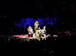 For the show, Carey sang fourteen original songs, including many of her biggest hits up until that point, as well as many songs from Daydream.[27] They included "Fantasy", "One Sweet Day", "Open Arms", "Always Be My Baby", "Forever" and "Underneath the Stars" as well as hits from her previous studio efforts.[27] Carey's following shows in France, Germany, The Netherlands and the United Kingdom were all sold-out as well, receiving warm critical response.[27] During the span of the tour's seven short dates, Carey had already begun working on concepts for her new album Butterfly.[27]