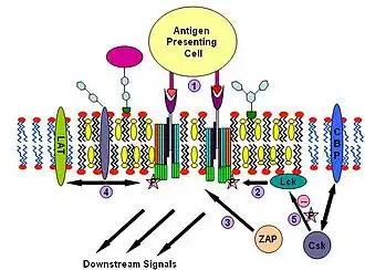 - ^ a b Janes, Peter W.; Ley, Steven C.; Magee, Anthony I.; Kabouridis, Panagiotis S. (2000). "The role of lipid rafts in T cell antigen receptor (TCR) signalling". Seminars in Immunology. 12 (1): 23–34. doi:10.1006/smim.2000.0204. PMID 10723795.