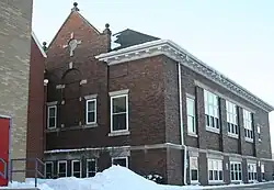 Early records of education in Metamora date back to 1836, when students attended classes taught in a log house by Betty Page. The village's first public school was built in 1845. This building was sold in 1850, and a more substantial two-story building was constructed on the corner of Partridge and Hanover Streets, offering a one-year high school curriculum. This structure was used until 1872, when it burned down, and a new building was built in its place. Built for $8000 by Soloman E. Egbert, the two-story brick building featured 4 rooms, a grammar department on the lower floor, and a high school on the second floor. With an enrollment of 32 students and 4 teachers in its first year of operation in its new building, the school added a second year to its secondary curriculum in 1878. In 1896, another teacher was added at the intermediate level, and a third year was added to the high school program. During this time, the Sisters of Saint Francis operated an orphanage on Madison Street in the village. When the orphanage moved to Peoria in 1915, the Metamora school board purchased the grounds, added a fourth year and several additional classes to the secondary curriculum, and established Metamora Township High School District 122.[8]