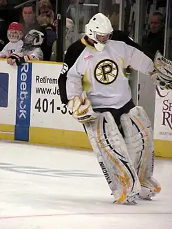 On March 30, 2010, the Boston Bruins signed Hutchinson to a three-year, entry-level contract. Having split the 2010–11 season with the Bruins' minor league affiliates—the Providence Bruins of the American Hockey League (AHL) and the Reading Royals of the ECHL—on April 12, 2011, Hutchinson was recalled by Boston to the NHL.[1] On March 3, 2012, just one day after his 22nd birthday, Hutchinson was recalled by Boston to serve as the team's back-up goaltender on the night due to an injury to starter Tuukka Rask.[2][3]