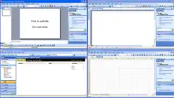 Microsoft Office 2003 applications from top right: Word, Excel, Outlook and PowerPoint which collectively make up the Standard edition. | |