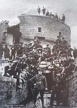 The fort suffered considerable damage during the Irish Civil War. It was occupied by Anti-Treaty forces and on 4 July 1922, it became the target of shelling by the army of the Irish Free State. The Free State Forces under Michael Collins had been given extensive support by the British Army at the express wish of Winston Churchill who insisted that the Republican Forces be crushed. Using the same British Army 18-pounder artillery piece which had shelled the Republican H.Q. in the Four Courts in Dublin some days earlier the Free State Forces bombarded Millmount fort for several hours before the Republican garrison retreated. It has been restored in 2000 and is now open to the public as a military museum.[2]