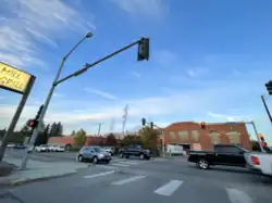 Argonne Road is the main street through Millwood, connecting the city with the rest of the Spokane area via highways to the south. As the main street, it is home to the commercial section of the historic district, which runs along the west side of Argonne and wraps around for the first block of Euclid Avenue. The rest of the district is single-family residential in nature.[5]