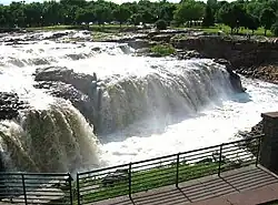 Minnehaha County is a county on the eastern border of the state of South Dakota. As of the 2020 census, the population was 197,214,[1] making it the state's most populous county, and was estimated to be 208,639 in 2024.[2] It contains over 22.56% of the state's population.[3] Its county seat is Sioux Falls,[4] South Dakota's most populous city. The county was created on April 5, 1862 and organized in 1868.[5] Its name was derived from the Sioux word Mnihaha, meaning "rapid water," or "waterfall" (often incorrectly translated as "laughing water").[6]