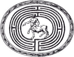 - ^ In a counter-intuitive cultural development going back at least to Cretan coins of the 4th century BCE, many visual patterns representing the Labyrinth do not have dead ends like a maze; instead, a single path winds to the center.[8]