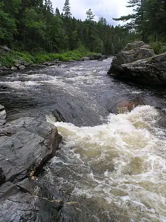 The Miramichi River /ˌmɪrəmɪˈʃiː/ is a river located in the east-central part of New Brunswick, Canada.[1][2] The river drains into Miramichi Bay in the Gulf of St. Lawrence. The name may have been derived from the Montagnais words "Maissimeu Assi" (meaning Mi'kmaq Land), and it is today the namesake of the Miramichi Herald at the Canadian Heraldic Authority.