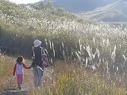 Miscanthus sinensis can show competitive abilities against aggressive species like switchgrass, enabling it to outcompete other plants, reduce biodiversity, and potentially lead to monocultures.[42] Its advantages over other plants include its tolerance to a wide range of temperatures, soil types, and moisture levels, as well as the potential for long-term seed viability.[43][44]