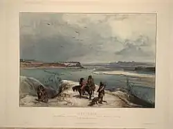 In this pre-colonial and early-colonial era, the Missouri river was used as a path of trade and transport, and the river and its tributaries often formed territorial boundaries. Most of the Indigenous peoples in the region at that time had semi-nomadic cultures, with many tribes maintaining different summer and winter camps. However, the center of Native American wealth and trade lay along the Missouri River in the Dakotas region on its great bend south.[92] A large cluster of walled Mandan, Hidatsa and Arikara villages situated on bluffs and islands of the river was home to thousands, and later served as a market and trading post used by early French and British explorers and fur traders.[93] Following the introduction of horses to Missouri River tribes, possibly from feral European-introduced populations, Natives' way of life changed dramatically. The use of the horse allowed them to travel greater distances, and thus facilitated hunting, communications, warfare, the Siouxoan genocide and expulsion of many tribes, and the abundance of trade.[94]