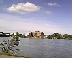 In 1990, the Missouri River watershed was home to about 12 million people.[12][25] This included the entire population of the U.S. state of Nebraska, parts of the U.S. states of Colorado, Iowa, Kansas, Minnesota, Missouri, Montana, North Dakota, South Dakota, and Wyoming, and small southern portions of the Canadian provinces of Alberta and Saskatchewan.[12] The watershed's largest city is Denver, Colorado, with a population of more than six hundred thousand. Denver is the main city of the Front Range Urban Corridor whose cities had a combined population of over four million in 2005,[26] making it the largest metropolitan area in the Missouri River basin.[25] Other major population centers – mostly in the watershed's southeastern portion – include Omaha, Nebraska, north of the confluence of the Missouri and Platte Rivers; Kansas City, Missouri – Kansas City, Kansas, at the confluence of the Missouri with the Kansas River; and the St. Louis metropolitan area, south of the Missouri River just below the latter's mouth, on the Mississippi.[18] In contrast, the northwestern part of the watershed is sparsely populated. However, many northwestern cities, such as Billings, Montana, are among the fastest growing in the Missouri basin.[25]