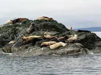 Mitlenatch Island Nature Provincial Park is home to the largest seabird colony in the Strait of Georgia. Glaucous-winged gulls, pelagic cormorants, pigeon guillemots, rhinoceros auklets and black oystercatchers also return to Mitlenatch each spring to breed. All sedentary marine life, including abalones, scallops and sea cucumbers are fully protected within this zone. Some of the largest garter snakes in BC reside here. These snakes are frequently encountered along trails and in beach and tide pool areas, where they feed on small fish such as sculpins and blennies. This park is a favourite haul-out for harbour seals, northern and California sea lions. The sea lions are generally present from late autumn to mid-May. River otters, killer whales and harbour porpoises are often sighted offshore.