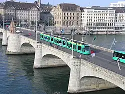 - ^ The 2 other bridges spanning the Rhine were the Wettsteinbrücke and the Johanniterbrücke. the rail bridge was located further outside of the city at the time and thus was not considered when the Middle Bridge was being named.