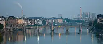 The Middle Bridge (German: Mittlere Brücke [common name] / German: Mittlere Rheinbrücke [official name], French: Pont du Milieu) is a historic bridge in the Swiss city of Basel. It is situated on the oldest existing bridge site across the Rhine, between Lake Constance and the North Sea.[1] It also marks the boundary between the High Rhine (Hochrhein) and Upper Rhine (Oberrhein/Rhin Supérieur) sections of the river.[2]