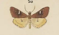 - ^ Mally, Richard; Nuss, Matthias (2011). "Molecular and morphological phylogeny of European Udea moths (Insecta: Lepidoptera: Pyraloidea)" (PDF). Arthropod Systematics & Phylogeny. 69 (1): 55–71. doi:10.3897/asp.69.e31737.