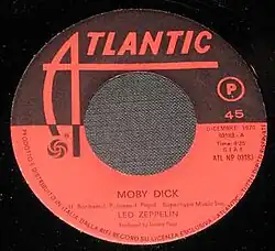 "Moby Dick" is an instrumental drum solo by English rock band Led Zeppelin, featured on the band's 1969 album Led Zeppelin II. Named after the 1851 novel of the same name by Herman Melville, it was also known by the alternative titles "Pat's Delight" (early 1968–1969 version with completely different guitar riff) and "Over the Top" (with "Out on the Tiles" intro section and original closing reprise) during various points of the band's career. The track is often regarded as one of the greatest drum solos of all time.[5][6][7]
