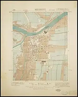 Mojokerto (Javanese: ꦩꦗꦏꦼꦂꦠ (Måjåkěrtå)) is a city in East Java Province of Indonesia.[4] It is located 40 km southwest of Surabaya, the provincial capital, and constitutes one of the component units of the Surabaya metropolitan area (known as Gerbangkertosusila) which comprises Gresik Regency, Bangkalan Regency, Mojokerto Regency, Mojokerto City, Surabaya City, Sidoarjo Regency, and Lamongan Regency. The city covers an area of 20.21 km2, and had a population of 120,196 at the 2010 census[5] and 132,434 at the 2020 Census;[6] the official estimate as of mid-2023 was 141,785 (comprising 70,490 males and 71,295 females).[3]