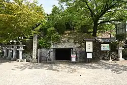 In addition, there are stones of the same shape as the burial chamber scattered around the grounds of Abe Monjuiin, suggesting the possibility that a similar stone chamber burial mound may have existed apart from this burial mound.[2]