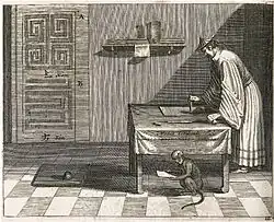 A number of the beasts were captured and put in a pen, to be cooked for the magistrate of a Tonkinese town. They picked the fattest of their number and thrust it weeping forth, to await the magistrate's pleasure in a covered cage: "The Commandant asked what thing this was, and the [xingxing] spoke from within the cage, and said, 'Only your servant and a jug of wine!' The Commandant laughed, and cherished it." Of course the clever, winebibbing animal became a treasured pet.[42]
