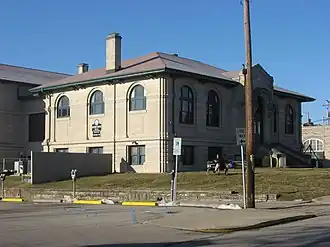 Monroe Carnegie Library, also known as Old Monroe Carnegie Library, is a historic Carnegie library located at Bloomington, Monroe County, Indiana. It was built in 1917, and is a one-story, rectangular, Neoclassical style limestone building on a raised basement. The Monroe County History Center is a history museum the historic library building that was established as a Carnegie library.[2] The museum is located on the site of Center School in the former Bloomington Public Library building.[3] The library building is now home to the Monroe County Historical Society, their collection of artifacts, and their Genealogy Library.[4] A historical marker is present at the site.[5] The History Center is located at 202 East 6th Street. It is a tourist attraction.[6]