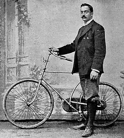 In the early days of competitive cycling Holbein was one of the absolute stars of the then-dominant British cycling scene. A good example of the dominance of British cycling in those days was the 1891 Bordeaux-Paris, which saw the Brits take the first four places, Holbein ranking second. His specialty was in long endurance races, which is shown by his victories in 24-hour races on the Great North Road and in the Cuca Cocoa Cup at the Herne Hill Velodrome. In total Holbein established 32 British cycling records.[2] Nowadays better known is his second place in the inaugural Bordeaux-Paris, where a group of 4 British cyclists dominated the race.[3]