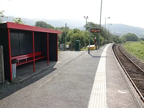 The station has very few facilities. There is a payphone on the platform, but there are no toilets or help points available. There is a small waiting shelter and a car park with 20 spaces.[7]