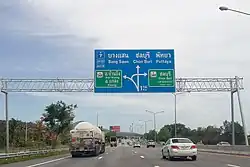 The Bangkok−Ban Chang Motorway (Thai: ทางหลวงพิเศษกรุงเทพมหานคร−บ้านฉาง, RTGS: Thangluang Phiset Krung Thep Maha Nakhon−Ban Chang), designated Motorway Route 7, is a motorway in Thailand, connecting Bangkok to Chonburi, Pattaya, and Map Ta Phut. The country's first intercity motorway, it is part of the Asian Highway Network as AH Route 19 and AH Route 123. The entire length from Bangkok to Pattaya is 125.865 kilometres (78.209 mi) and the posted speed limit is 120 kilometres per hour (75 mph), enforced primarily by speed cameras. An extension between Pong and Map Ta Phut opened in May 2020.[1] It is part of the transport network development project in the eastern seaboard.