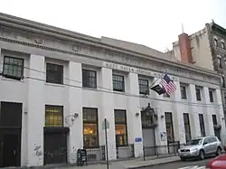 - The Mott Haven Historic District is located on Alexander Avenue between East 138th and East 141st Streets.[34] The district is primarily residential in character with four- and five-story row houses dating to the last half of the 19th century, and contains the row of brownstones known historically as Doctors' Row and Irish Fifth Avenue. It also has the 40th Precinct police station, the 1905 neo-renaissance Mott Haven Branch of the New York Public Library, and Saint Jerome's Roman Catholic Church.[35][36] It was listed on the National Register of Historic Places in 1980.[6]