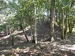 Motul de San José lies on a limestone plateau at the northern edge of the fault depression that underlies the central lakes of the Petén Basin.[9] The local topography consists of ridges, generally running east–west or northeast–southwest alternating with lower-lying areas with clay soils. These low-lying areas tend to feed into drainage systems flowing into either Lake Petén Itzá itself or into the Akte River. The Kantetul River is a seasonal watercourse with its origin 5 kilometres (3.1 mi) to the northeast of the site and flowing westwards into the Akte River, passing 2 kilometres (1.2 mi) from the site core.[10] The Akte River in turn flows west into the San Pedro River, which flows northwest into Mexico where it joins the Usumacinta River and ultimately empties into the Gulf of Mexico. A mixture of ancient and modern agricultural terraces line the riverbank, 2 kilometres (1.2 mi) north of the site core.[11] Access to water was crucial for Maya cities, since much of the Maya lowlands have been described as a seasonal desert due to the combination of a prolonged dry season lasting between four and six months together with the limestone geography that makes surface water scarce.[12] In addition the Maya greatly preferred water to land transport and used canoes to trade extensively by river and sea, and access to river routes connected cities to extensive trade routes.[13]