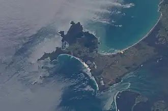 ![]() View of the Karikari Peninsular with Motutapu Island taken during ISS Expedition 18. | |