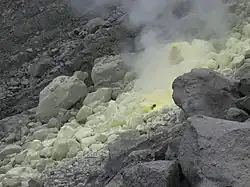 The volcanic history of Mount Apo is poorly known but eruptions have produced andesitic-to-dacitic lava. A line of solfataras extend from the southeast flank at an elevation of 2,400 m (7,874 ft) to the summit. Mount Apo is not known to have had historical eruptions, and was incorrectly attributed to be the source volcano of the 1641 eruption of Mount Melibengoy, also in Mindanao.[9]