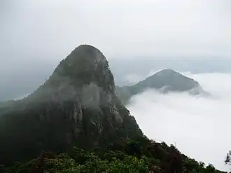 It bases at the east of Liuxi River National Forest Park.[1] The mountain was named of cockscomb for its summit and subpeak together looks like cockscomb in the distance. The subpeak, which rises to a height of 1,146.7 metres (3,762 ft) above sea level, is much more famous than the main peak. This results some people mistakenly used its height as the mountain's elevation.